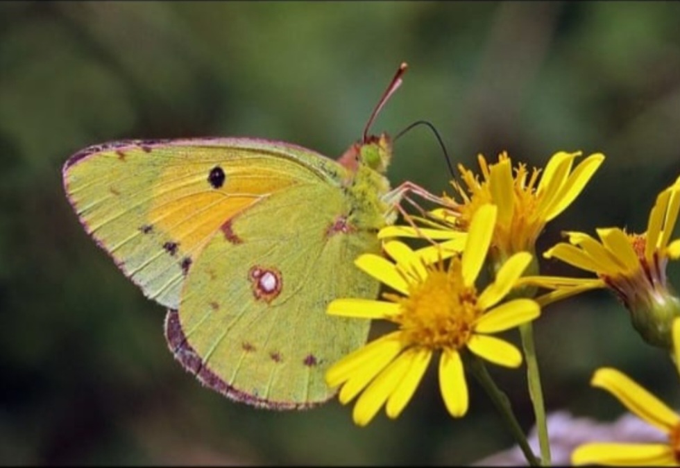 Colias croceus, clouded yellow, is a small butterfly of the family Pieridae, the yellows and whites. Photographs by, Charles J. Sharp.