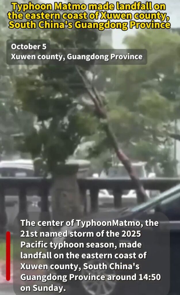 GUANGZHOU, China, 5th October, 2025 Typhoon Matmo, the 21st named storm of the 2025 Pacific typhoon season, made landfall at 2:50 p.m. local time today along the eastern coast of Xuwen County in Zhanjiang City, Guangdong Province. The typhoon had maximum sustained wind speeds of 151 kph.