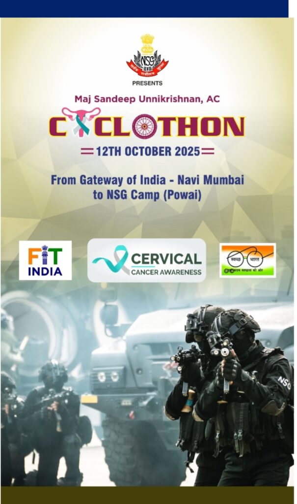 The cyclothon will commence at 7 am from the Gateway of India, Mumbai, covering a distance of 100 kilometres across the city. The event will witness active participation from over 250 professional cyclists, alongside NSG personnel symbolizing physical fitness, unity, discipline, and a shared sense of national duty.