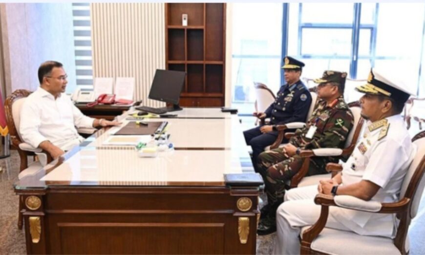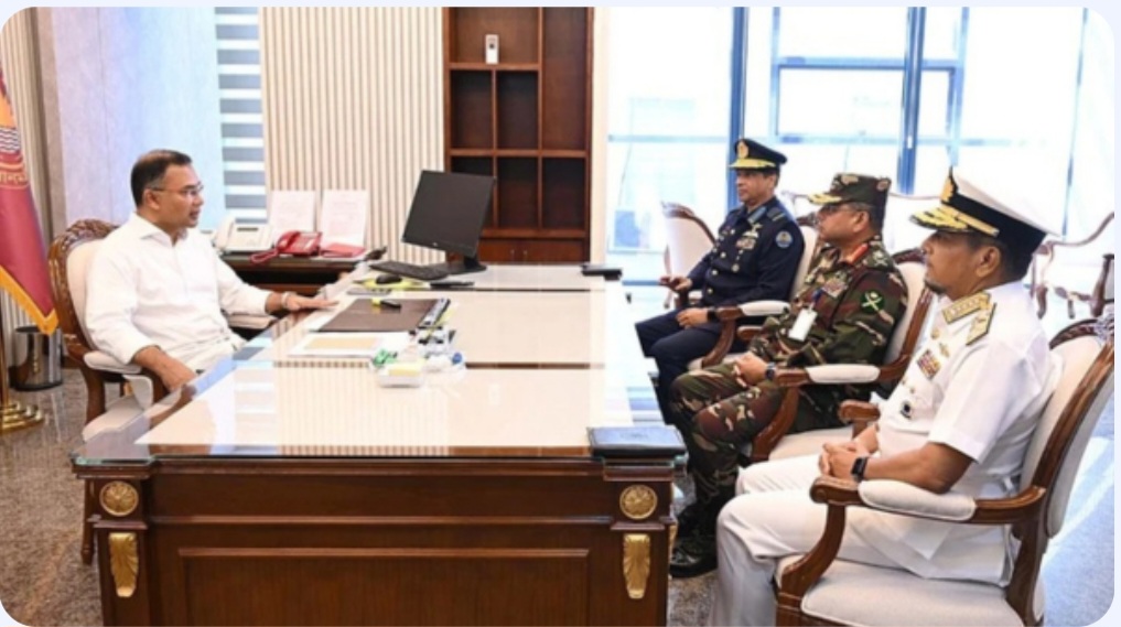 The chiefs of Bangladesh’s three armed services paid a courtesy call on Prime Minister Tarique Rahman at the Bangladesh Secretariat this morning, his second day in office.