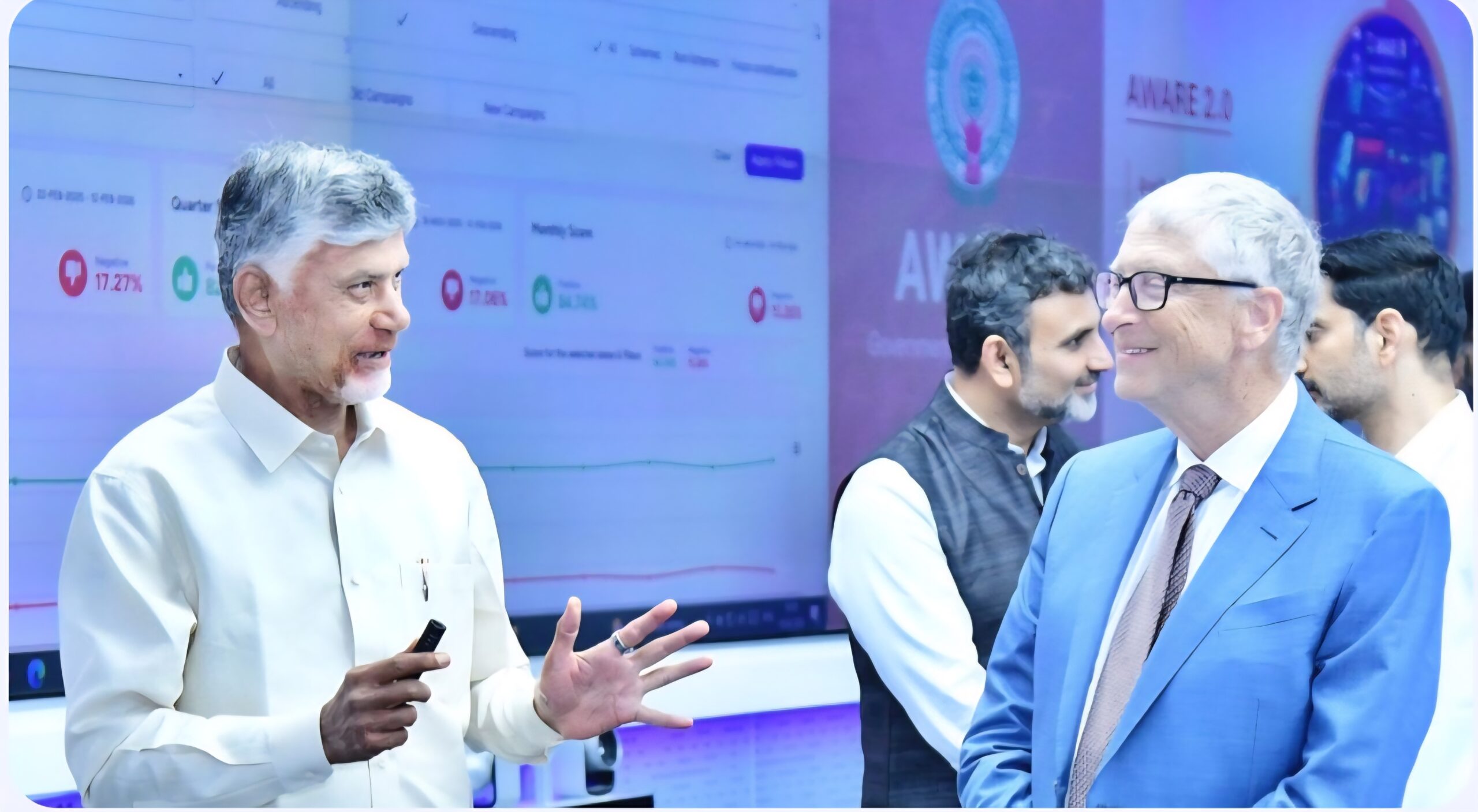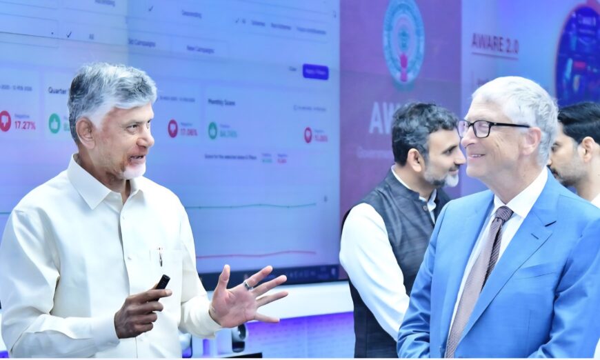 Officials made presentations to Mr Gates on digital initiatives, including Data Lake, AWARE 2.0 and WhatsApp Governance, aimed at improving the delivery of citizen services at the Real Time Governance Society (RTGS) centre. Officials said blockchain technology and QR code-based mechanisms are being used to enhance transparency and security.