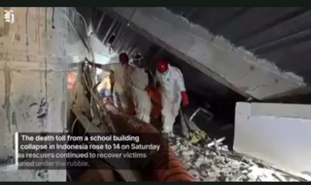In Indonesia, the death toll from the collapse of a boarding school in East Java province has risen to 14, according to officials. Rescuers battle to recover dozens of students believed still buried under the rubble. Hundreds of students, most of them teenage boys, were inside the Al-Khoziny Islamic Boarding School in the town of Sidoarjo when it collapsed on Monday.