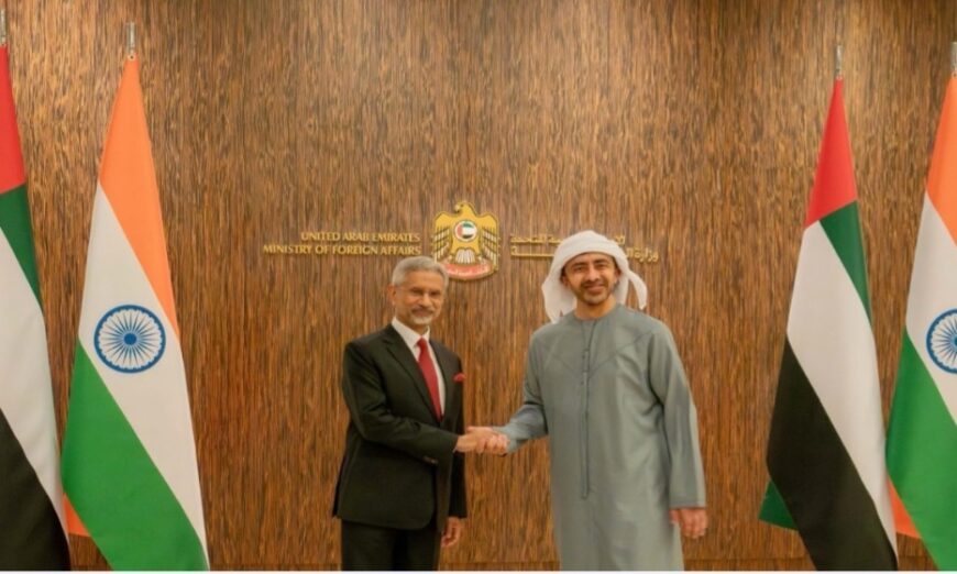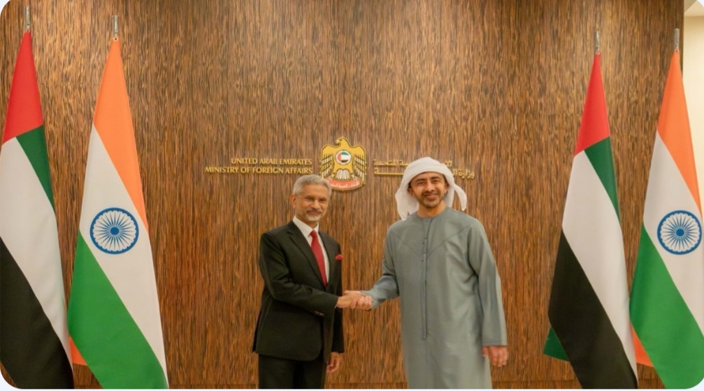 The External Affairs Minister conveyed appreciation for the UAE government’s support in ensuring the safety and well-being of the Indian community, while both sides reviewed cooperation and ways to deepen the Comprehensive Strategic Partnership between the two countries.