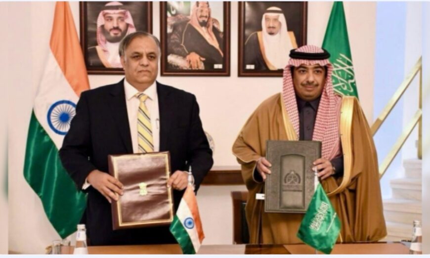 The agreement was signed by Indian Ambassador to Saudi Arabia Suhel Ajaz Khan and Abdulmajeed bin Rashed Alsmari, deputy minister for protocol affairs at the Saudi Ministry of Foreign Affairs.