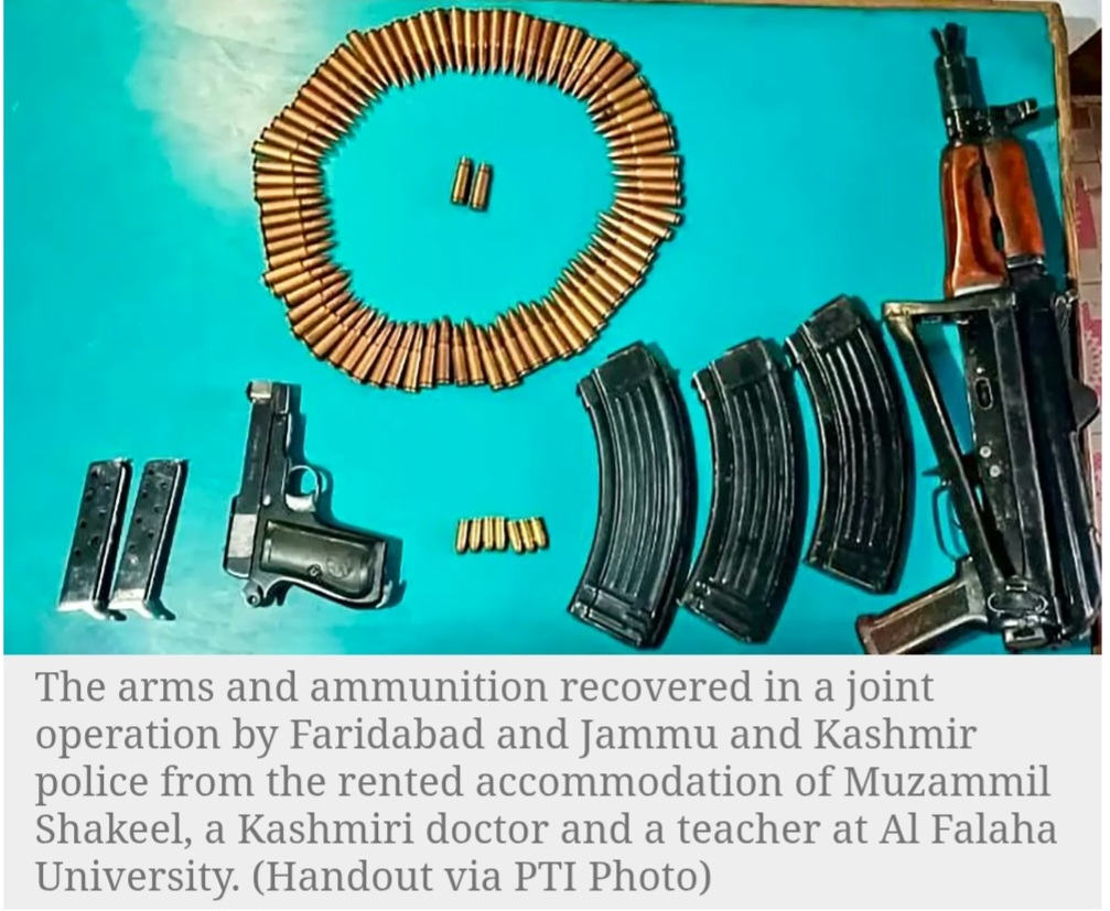 Faridabad and Jammu and Kashmir police conducted a joint raid and arrested a Kashmiri doctor in Faridabad. A large quantity of explosives was recovered from the doctor’s home in Dhauj. Dr Mujjabal works at Al Falah University in Faridabad.