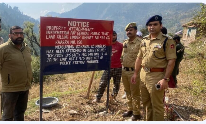 In a major crackdown on terrorist networks operating across Jammu and Kashmir, the Reasi District Police has attached property belonging to a Pakistan-based terror operative, Mohd Sharif Mirasi, originally a resident of village Sildhar in Mahore tehsil of the district.