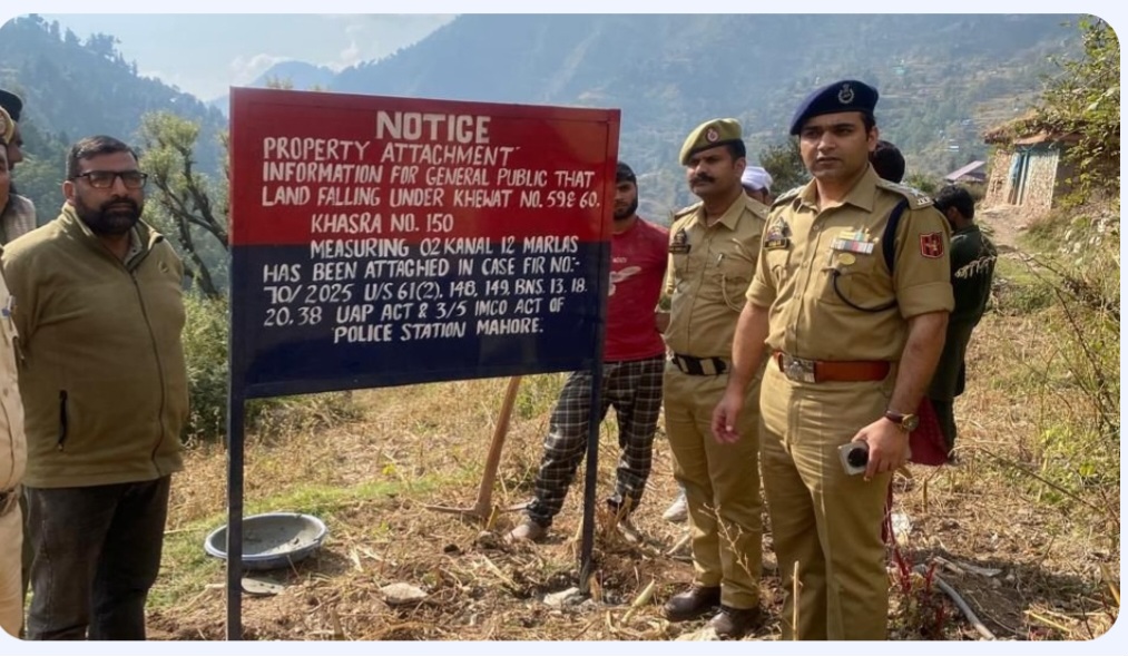 As part of this action, three kanals and six marlas of land falling under Khasra Nos. 138 and 150 at Sildhar, Mahore have been attached under Section 25 of the Unlawful Activities (Prevention) Act [UA(P)A].