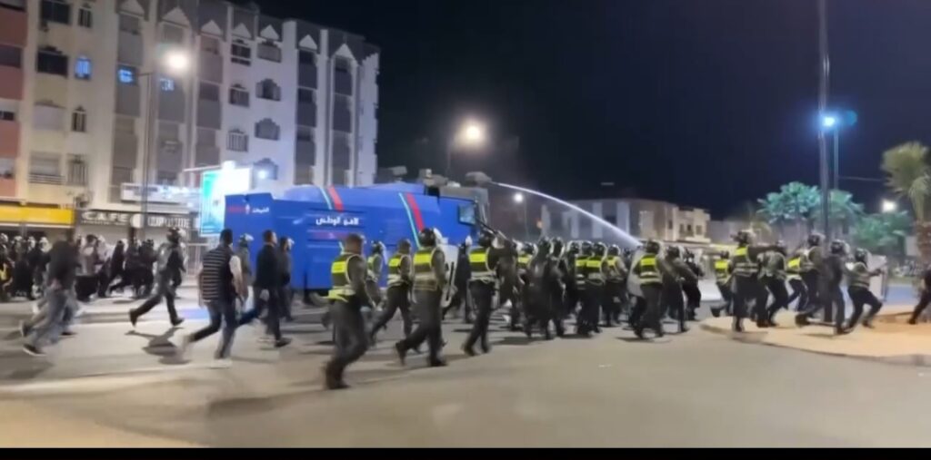 On Tuesday, unauthorised protests turned violent in cities including Oujda and Inezgane.