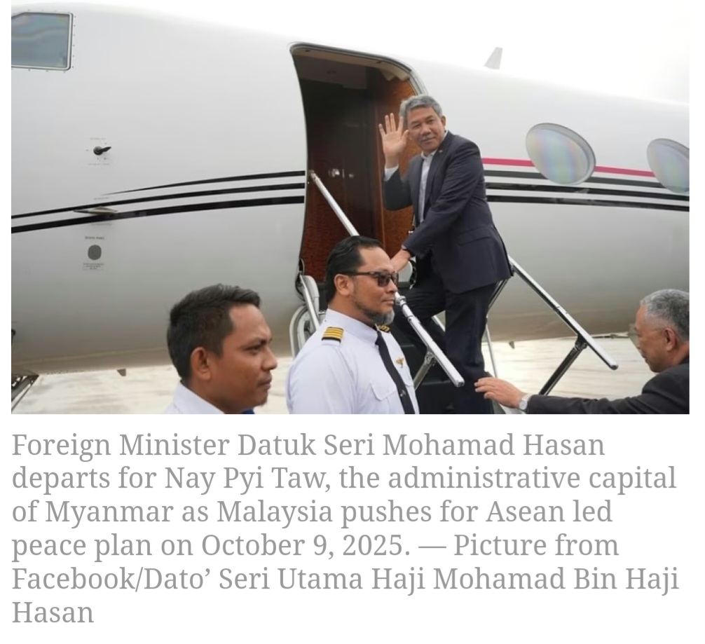 Minister of Foreign Affairs Dato’ Seri Utama Haji Mohamad bin Haji Hasan undertook a working visit to Nay Pyi Taw, Myanmar, on 9th. October 2025. The one-day visit was undertaken in the Foreign Minister’s capacity as Chair of ASEAN.