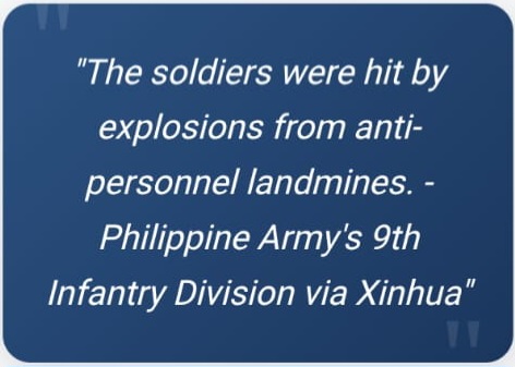 In the Philippines, two soldiers were killed while three others were injured after landmines allegedly planted by rebels exploded during military operations in Camarines Sur province on Luzon island.