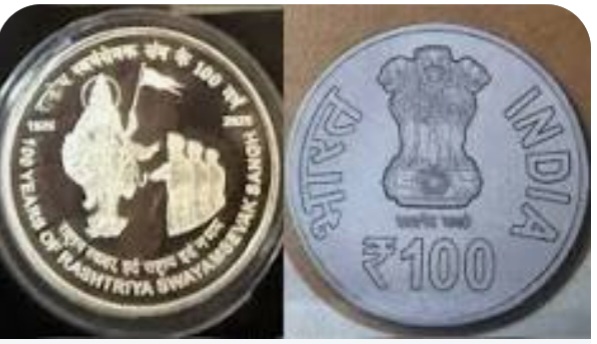 The ₹100 coin, released by the PM at Delhi’s Ambedkar International Centre, features the national emblem on one side and an image of ‘Bharat Mata’ in ‘Varad Mudra’ (hand position representing giving or granting blessings), with a lion, being saluted by swayamsevaks, on the other.