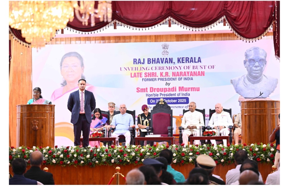 The President of India, Smt Droupadi Murmu unveiled the bust of former President of India, Shri KR Narayanan at Raj Bhavan, Thiruvananthapuram today (October 23, 2025).