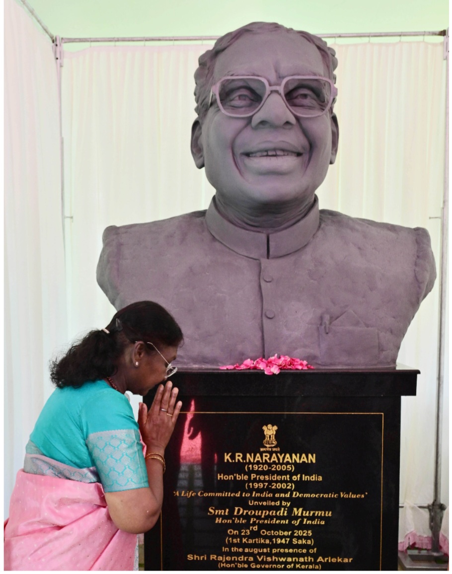 The President of India, Smt Droupadi Murmu unveiled the bust of former President of India, Shri KR Narayanan at Raj Bhavan, Thiruvananthapuram today (October 23, 2025).