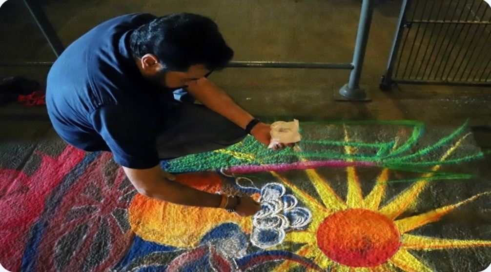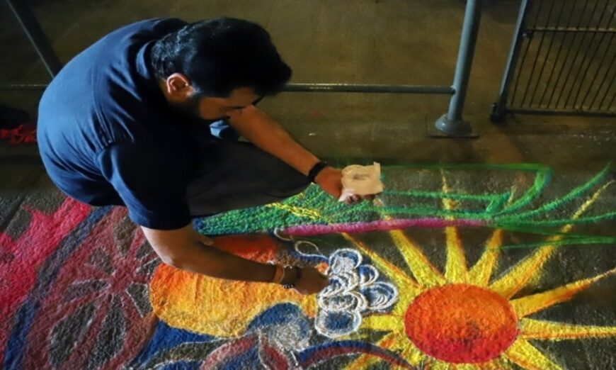 Celebrations have started early in the morning with the making of beautiful designs of Kolam before every house. As devotees pray to the sun god, chants of ‘Pongalo pongal’ and the overflowing of Pongal from the pots will be notable.
