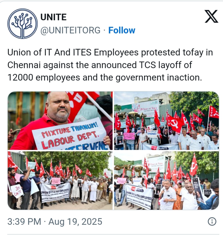 The IT employees’ body has alleged that TCS has not paid any statutory retrenchment compensation to the employees, and staff are being coerced into “voluntary resignations” under fear and pressure.