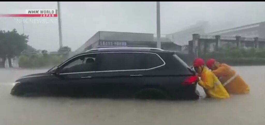Matmo directly hit the southwestern parts of Guangdong, where 151,000 people evacuated, The Paper reported. Meanwhile, local media aired footage showing large waves washing seawater onto roads in villages by the coast in Guangdong’s Zhanjiang.
