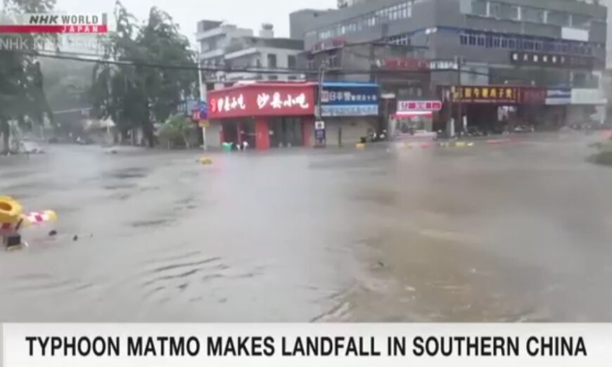 Matmo directly hit the southwestern parts of Guangdong, where 151,000 people evacuated, The Paper reported. Meanwhile, local media aired footage showing large waves washing seawater onto roads in villages by the coast in Guangdong’s Zhanjiang.
