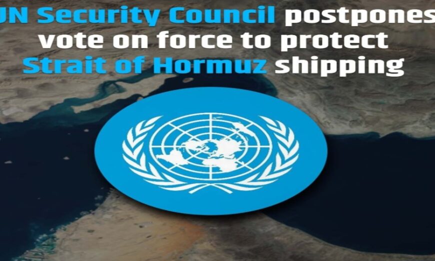 The UN Security Council has postponed a vote on authorising the use of defensive force to protect shipping in the Strait of Hormuz from Iranian attacks.