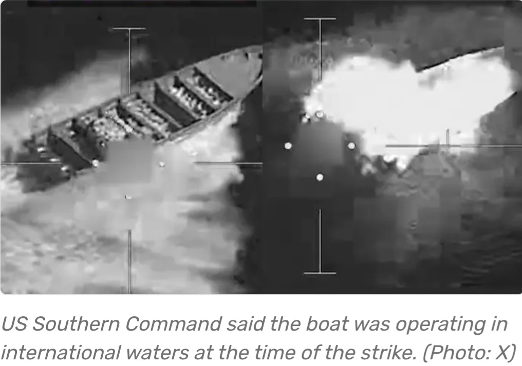 US Southern Command stated the vessel was moving along a known narcotics route in international waters and was hit by Joint Task Force Southern Spear after intelligence confirmed it was involved in smuggling.