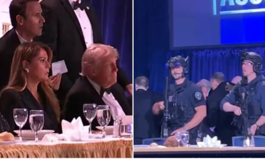 US President Donald Trump was evacuated from the White House Correspondents’ Association Dinner early this morning after suspected gunshots were reported in the lobby of the Washington Hilton.