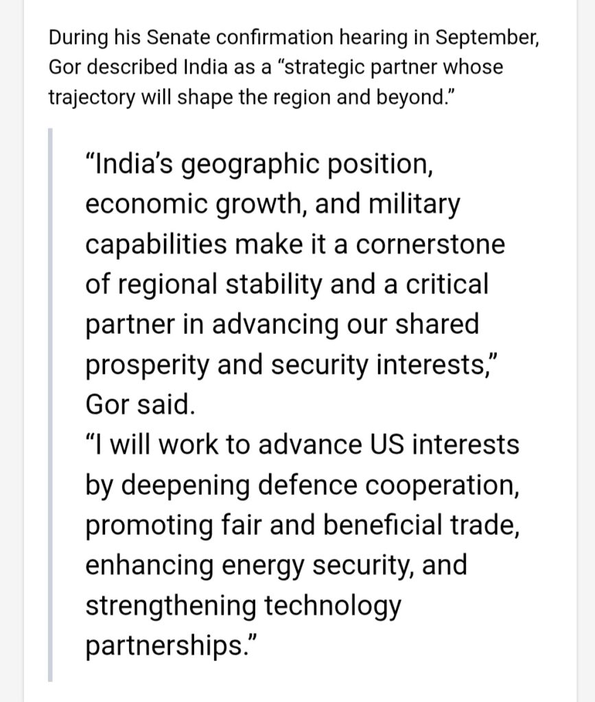 Confirmed by a Senate vote in October, Gor will be the youngest US ambassador to India and was the Director of the White House Presidential Personnel Office. He would also serve as a special envoy for South and Central Asian affairs.