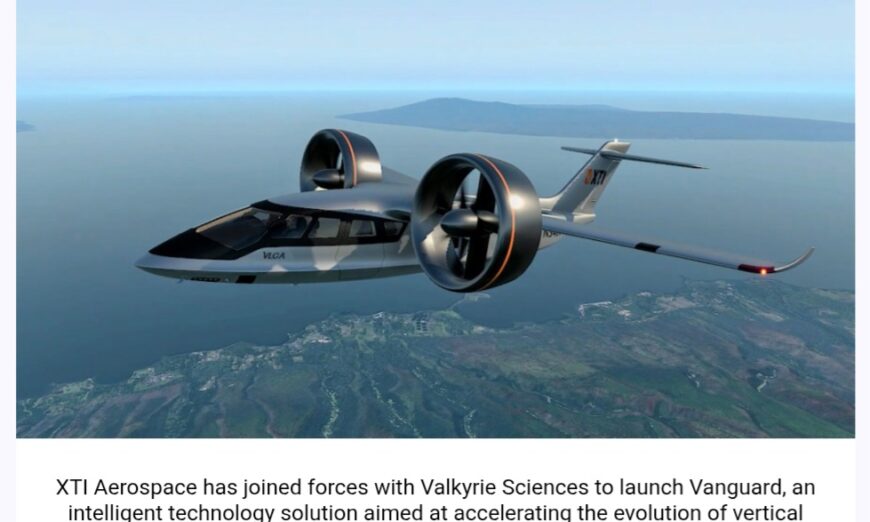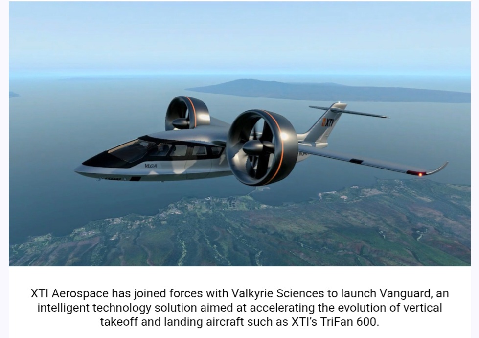 XTI Aerospace has joined forces with Valkyrie Sciences to launch Vanguard, an intelligent technology solution aimed at accelerating the evolution of vertical takeoff and landing (VTOL) aircraft such as XTI’s TriFan 600.